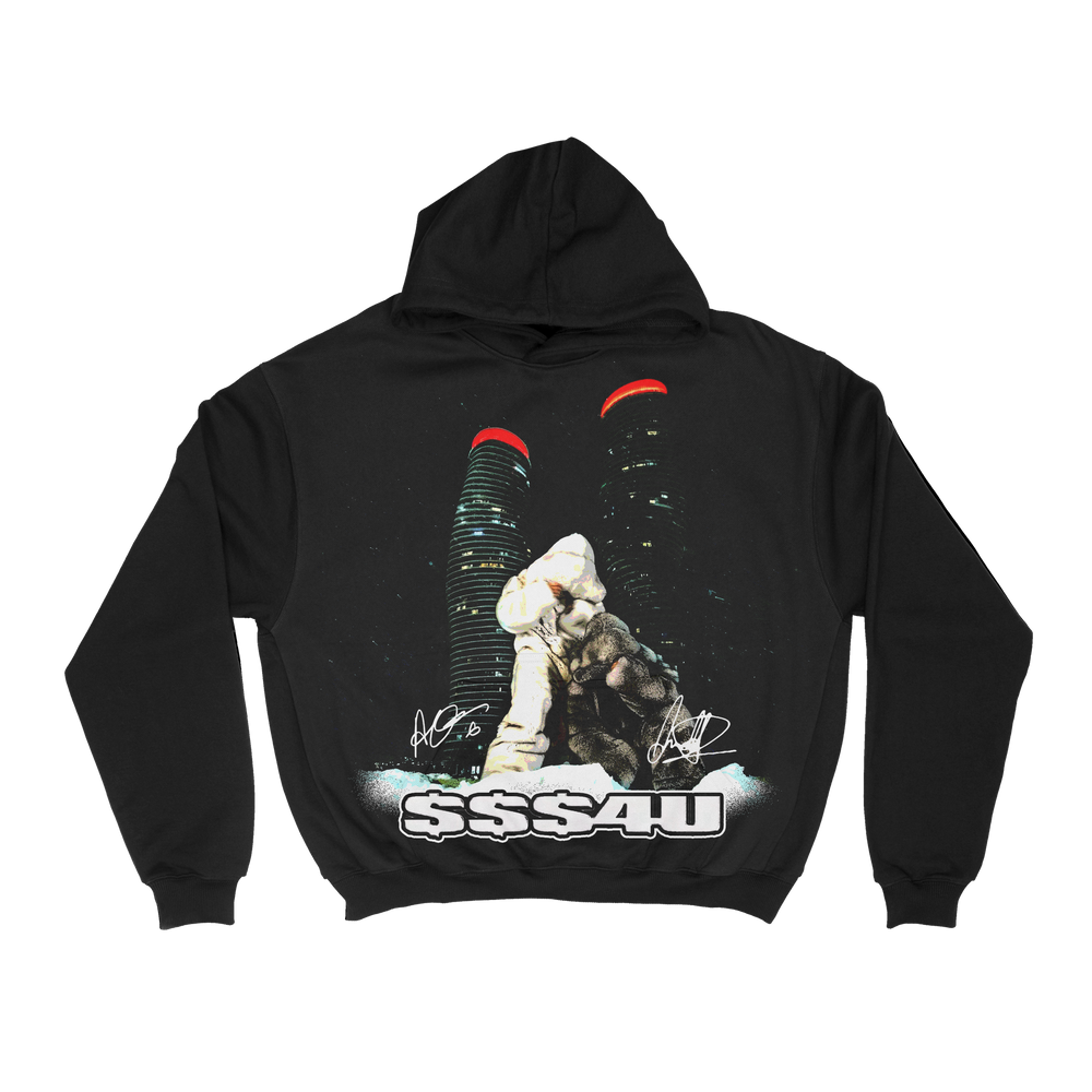 Celebrate the release of Drake & PartyNextDoor’s groundbreaking 2025 album $$$4U with this exclusive cover art T-shirt. Featuring the official album artwork, this tee showcases a bold, surreal design with sculpted figures embracing against the backdrop of Toronto’s iconic skyline, symbolizing themes of love, ambition, and loss.